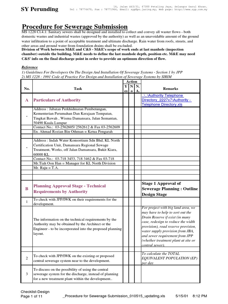 Procedure For Sewerage Submission 010515 Updating Sanitary Sewer Hydraulic Engineering