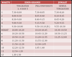 Jadual Waktu Kolej Tingkatan Enam Pontian