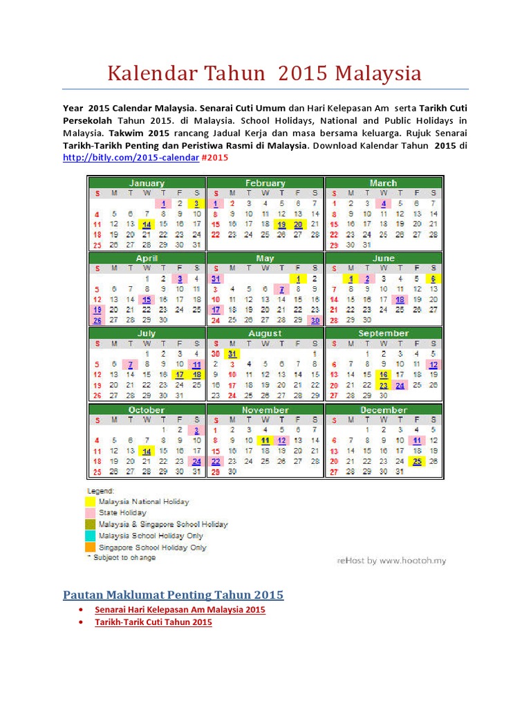 Kalendar Cuti Umum Dan Cuti Sekolah 2015 Malaysia Melvister Com Holiday Calendar Calendar Malaysia