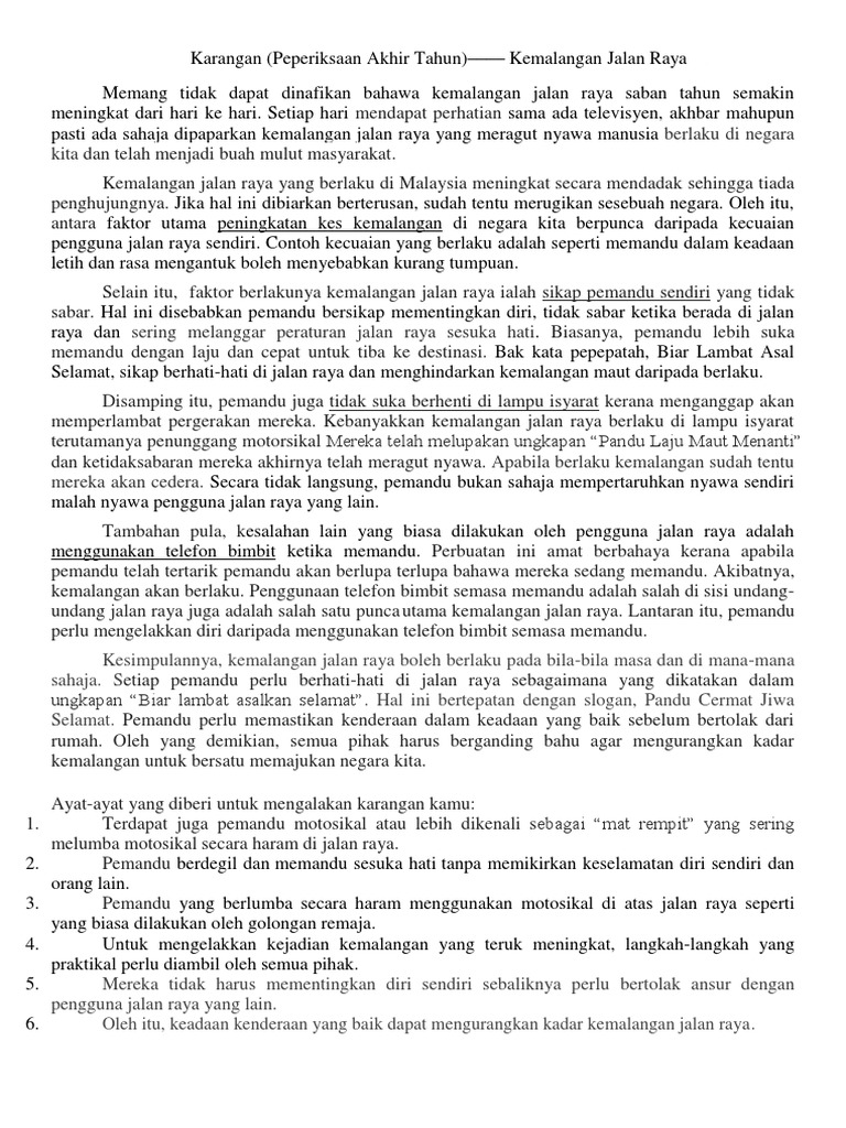 Karangan Berhati Hati Di Jalan Raya