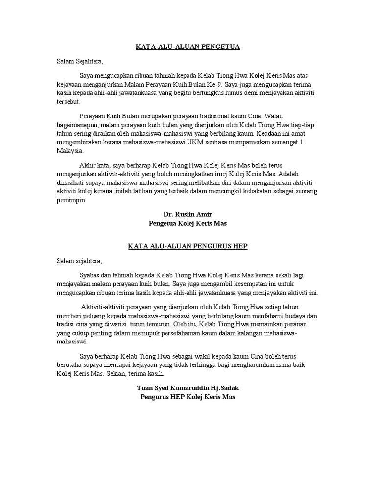 Doc Teks Ucapan Alu Aluan Juwita Abu Samah Academia Edu