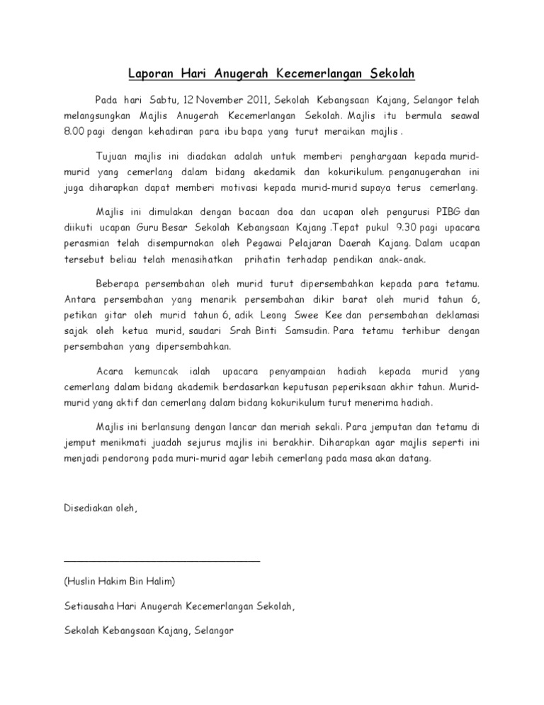 Laporan Hari Anugerah Kecemerlangan Sekolah