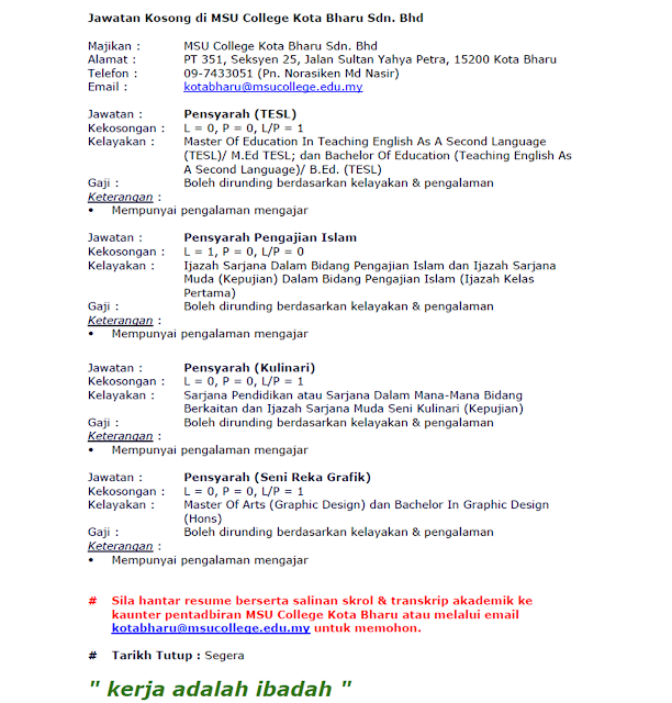 Jmc Kota Bharu Jawatan Kosong Di Msu College