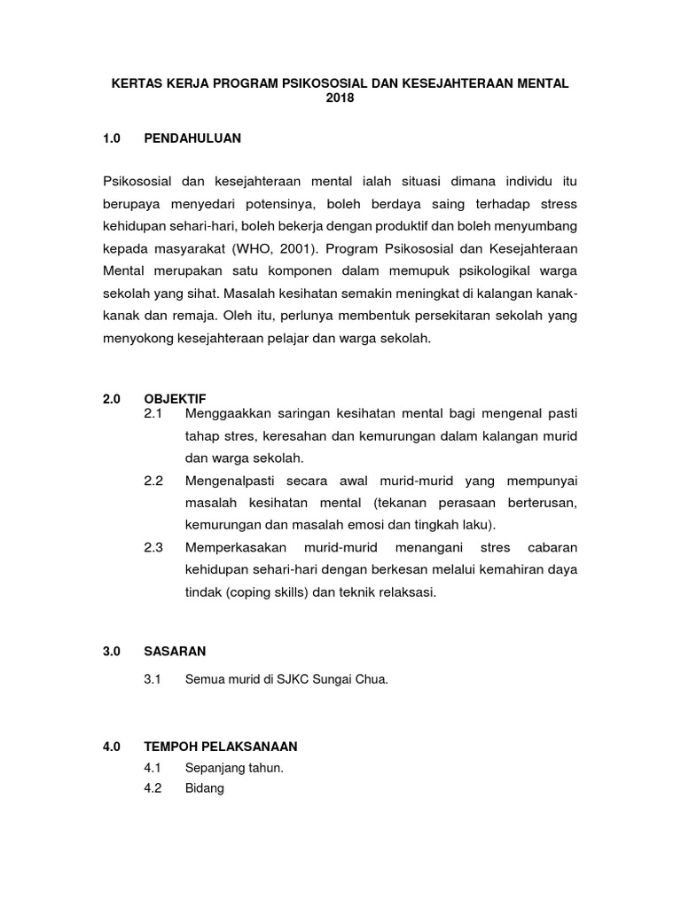 Kertas Kerja Program Psikososial Dan Kesejahteraan Mental Scrib Docx